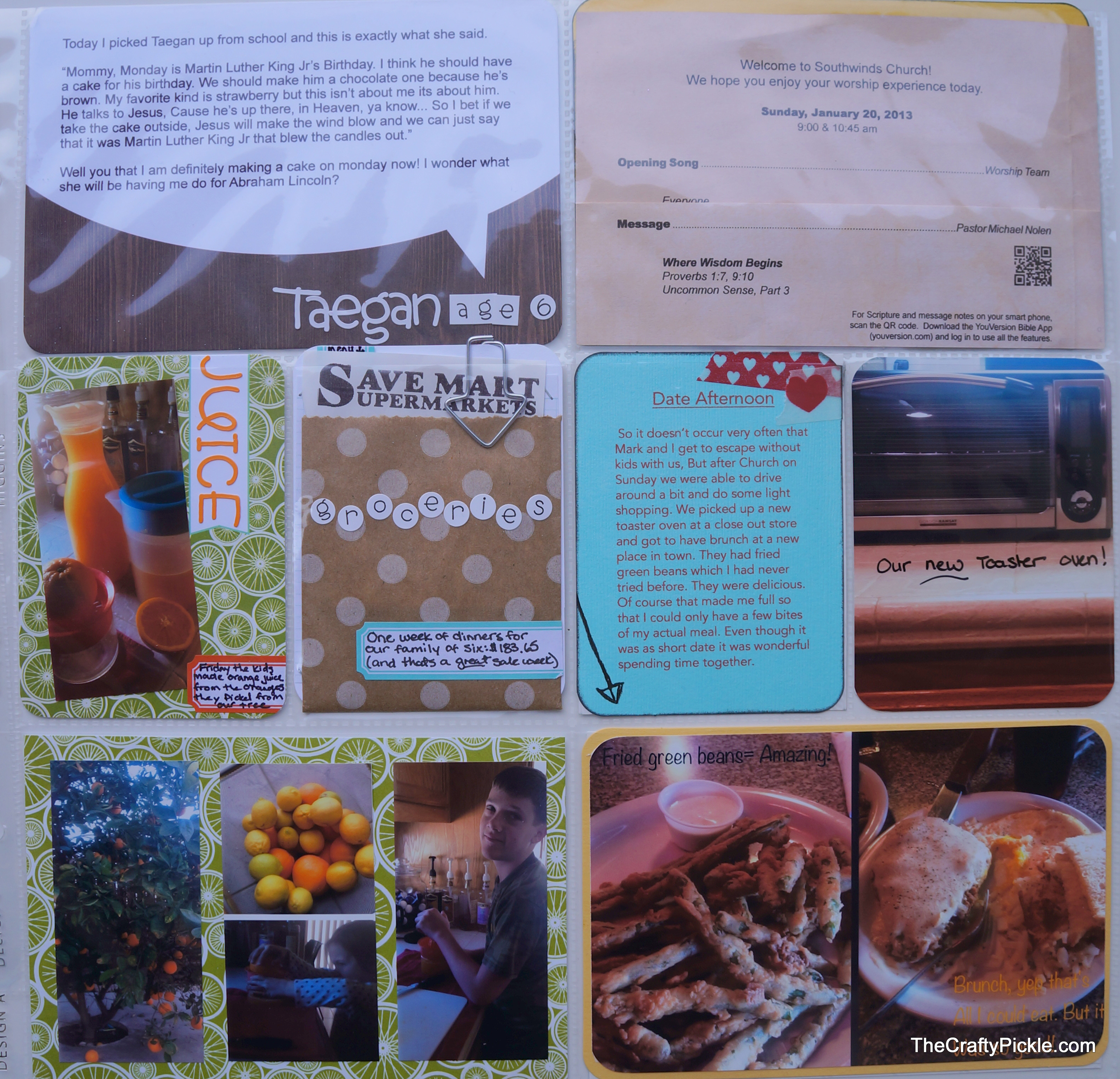 Hi Fellow Project lifer’s! you get a few post’s all at once from me today! Here is my week three. I really tried to stick to using the studio calico block party kits for the most part for this week… I did add in a little bit of my seafoam kit and some pebbles cards from their seen and noted collection (which I LOVE) I took a few close ups of this week as well. I used the little bag that came in the SC Kit as inspiration of a grocery bag and included our receipt for groceries that week.