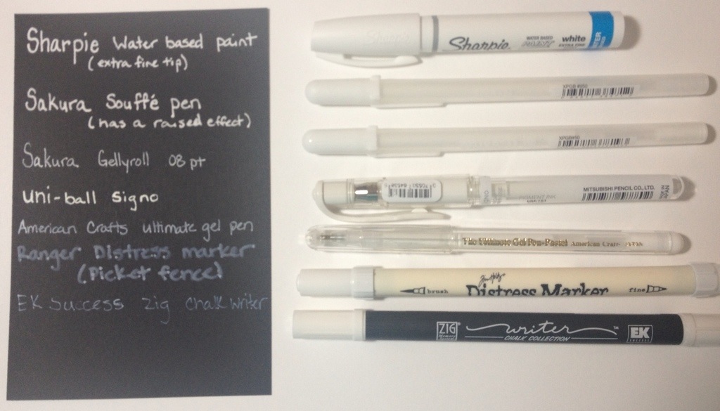 So there you have it. I am sure there are white pens out there that I haven’t tried. If you have a pen you LOVE and it isn’t mentioned here I would love to hear about it! I hope this helps you decide what the best white pen is for your crafty projects.