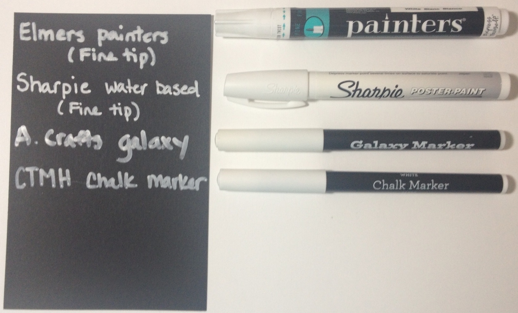 The second set here is more bold and I think better for large lettering or white ink needs on a larger scale. The Elmer’s painters marker was a little iffy for me. Came out kind of watery as took longer to dry. The galaxy marker is just okay as I felt it wasn’t sharp enough in the end