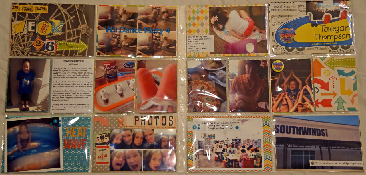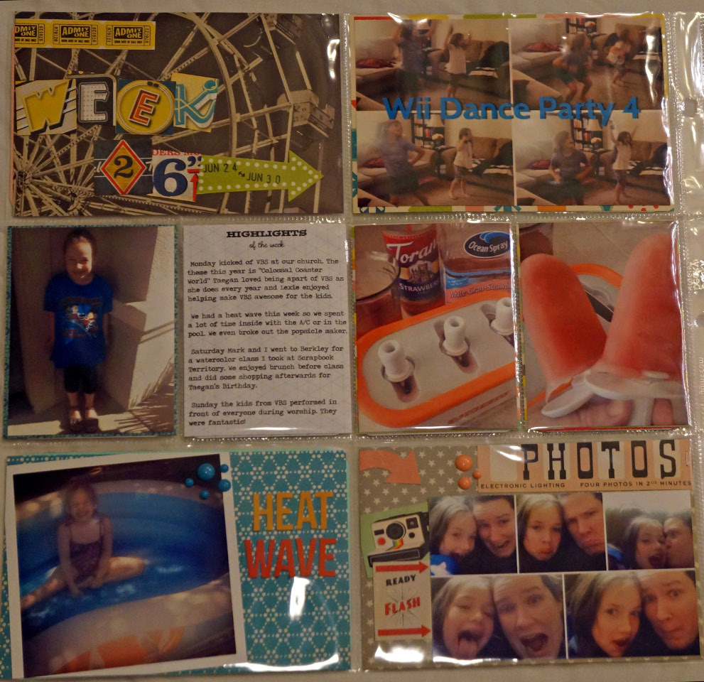 Week 26 was our VBS week and it was so much fun! The theme our church picked was Colossal Coaster World: Facing fears, Trusting God. With the roller coaster theme going on this week it made me think of the Midway papers from October afternoon. I had been hording saving these papers for a fun summer spread and this ended up being the perfect week for them.
