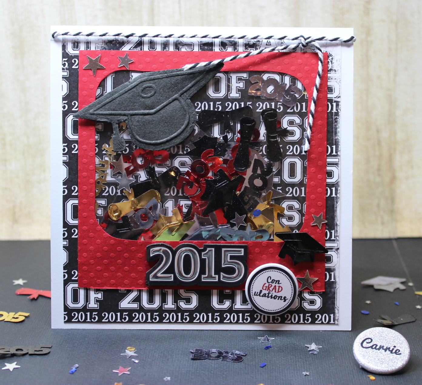 from TheCraftyPickle shop. I created a shaker card. I think this is going to be a big hit with my niece. It was lucky for me that both schools have Red, White and Black for their school colors. This card is embellished with a a flair button from the Graduation set too.