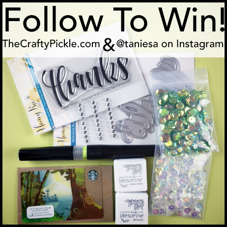 How about a little blog candy? Simply subscribe to my blog, and follow me on Instagram HERE. Once you have done that please comment below and let me know your following as well as your favorite Coffee or Tea (I am also a Davids Tea fan!). One lucky winner will get a Starbucks gift card (a Seattle Exclusive card) two versafine ink cubes in Onyx black and Olympia Green, two bags of sequins in a sparkly Starbucks Green shade and a semi-transparent white, some sticky back gems, a new clear sparkle brush marker, and an awesome big Thanks stamp with a matching die set! I am ever so thankful for my followers!