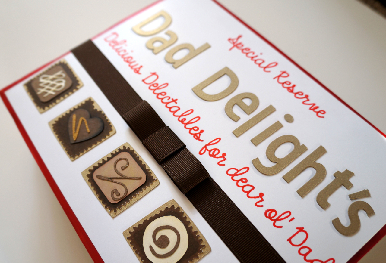 Today I bring you something different from a scrapbook page, card or project life layout. Fathers day is coming up and I know most dads will be wishing for power tools and sports tickets. My Dad likes all those things too, but my Dad also loves chocolate! I made a few of these gifts in the past, but for women. This time around I’m giving it a whirl with a fun masculine feel to it!