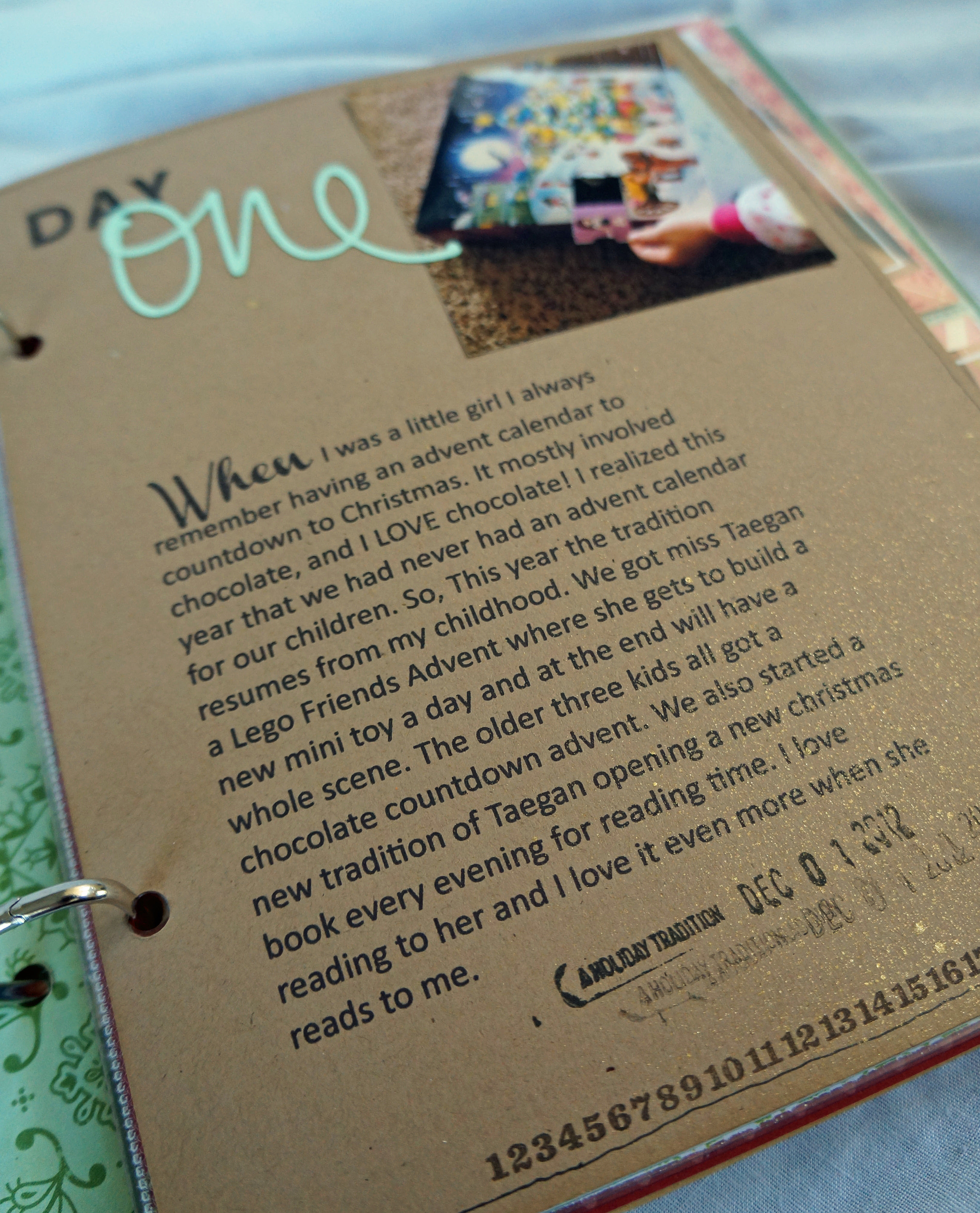 Day one: Lego advent! I loved advent calendars when I was a little girl so I got my own little girl one this year. She LOVED it. I especially love the picture of her holding the little lego doll, a reminder that her hands were this small once.