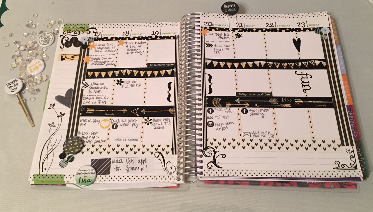 It’s Lisa here today to share this week’s planner layout. Planners are on trend in the Paper crafting community. The Crafty Pickle’s shop will be opening back up soon. Be sure to check out all of the planner goodies in The Crafty Pickle’s new inventory. It’s a planner’s dream!!