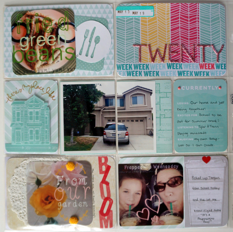 Day number two we celebrated my niece’s 5th birthday. I used October Afternoon’s Cakewalk line in this two page spread. The photo of the two cousins giggling always makes me smile every time I see it.