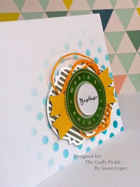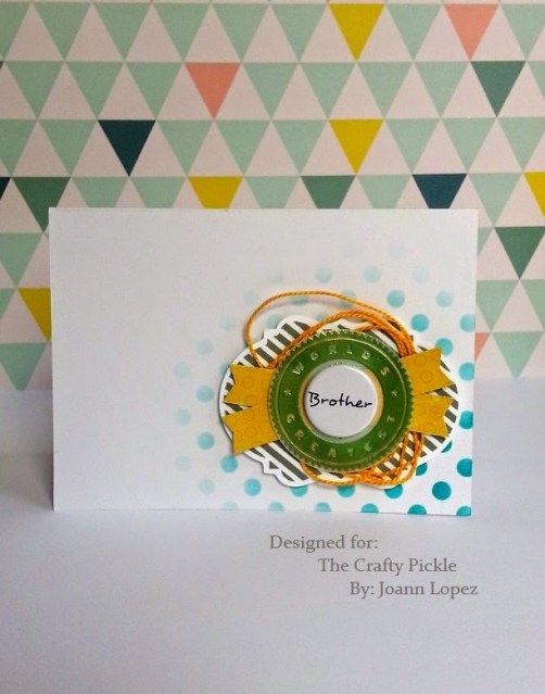 I also used the stamp set Perfect fit- Dad Holiday to stamp the “World’s Greatest” on some vellum, finished the card off by cutting a few banner shape pieces, some yellow orange twine and of course some TCP Family Themed Flair!